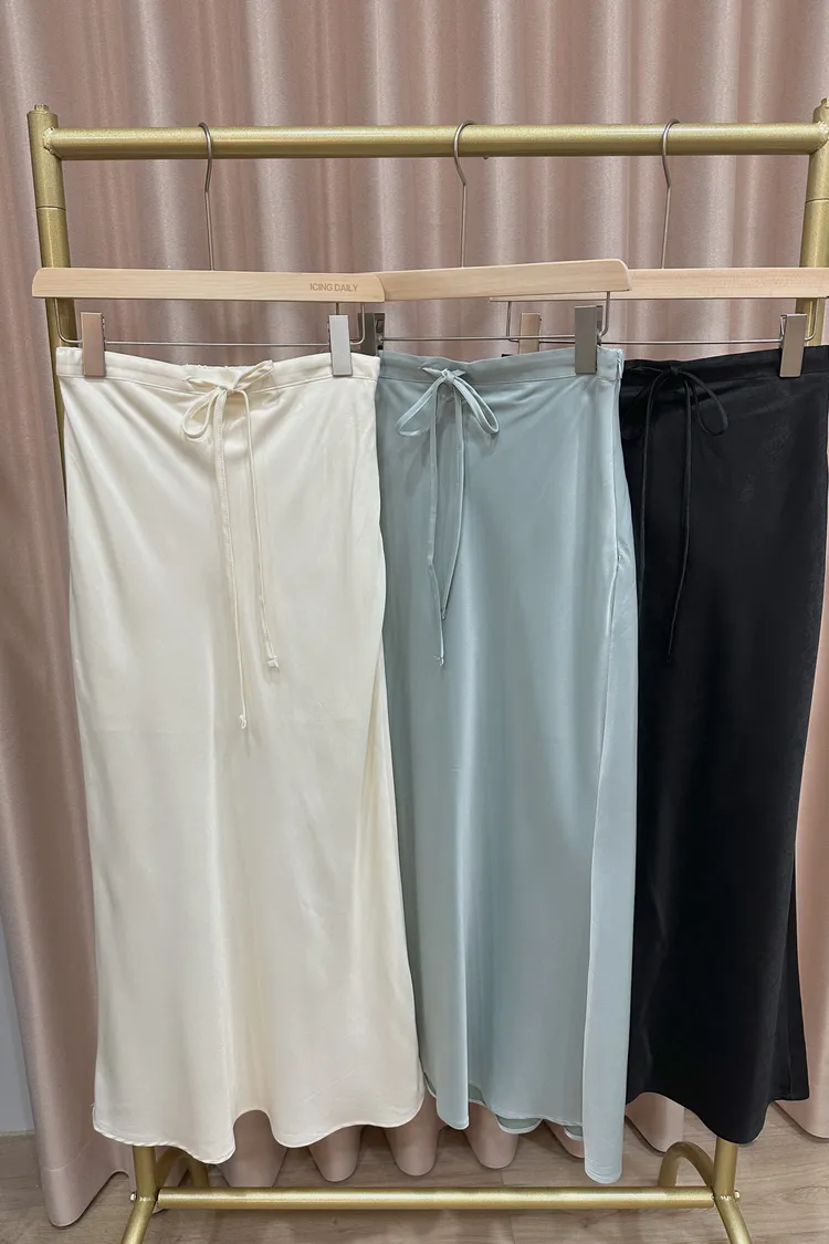 光澤抽繩裙(米,綠,黑)