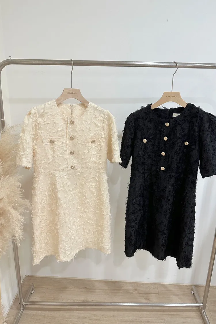 金釦小香風質感洋裝(米,黑)