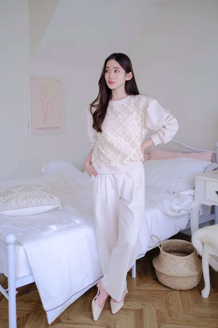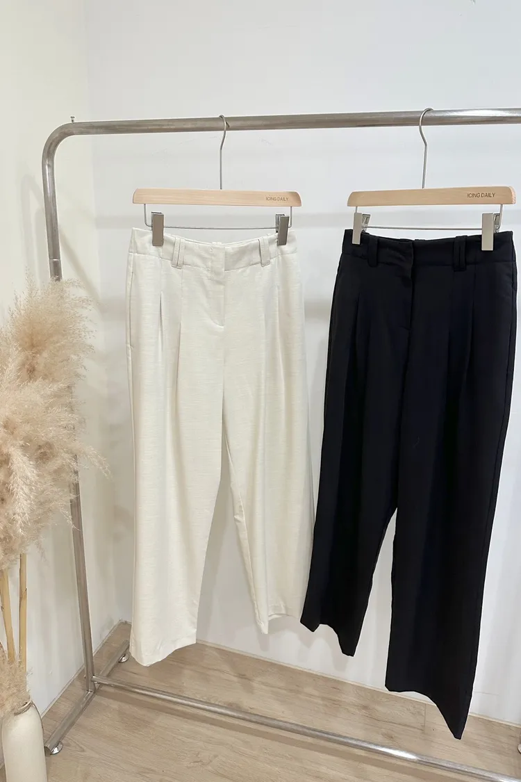 羊毛16%打摺寬版西裝褲(白,黑)(S,M)