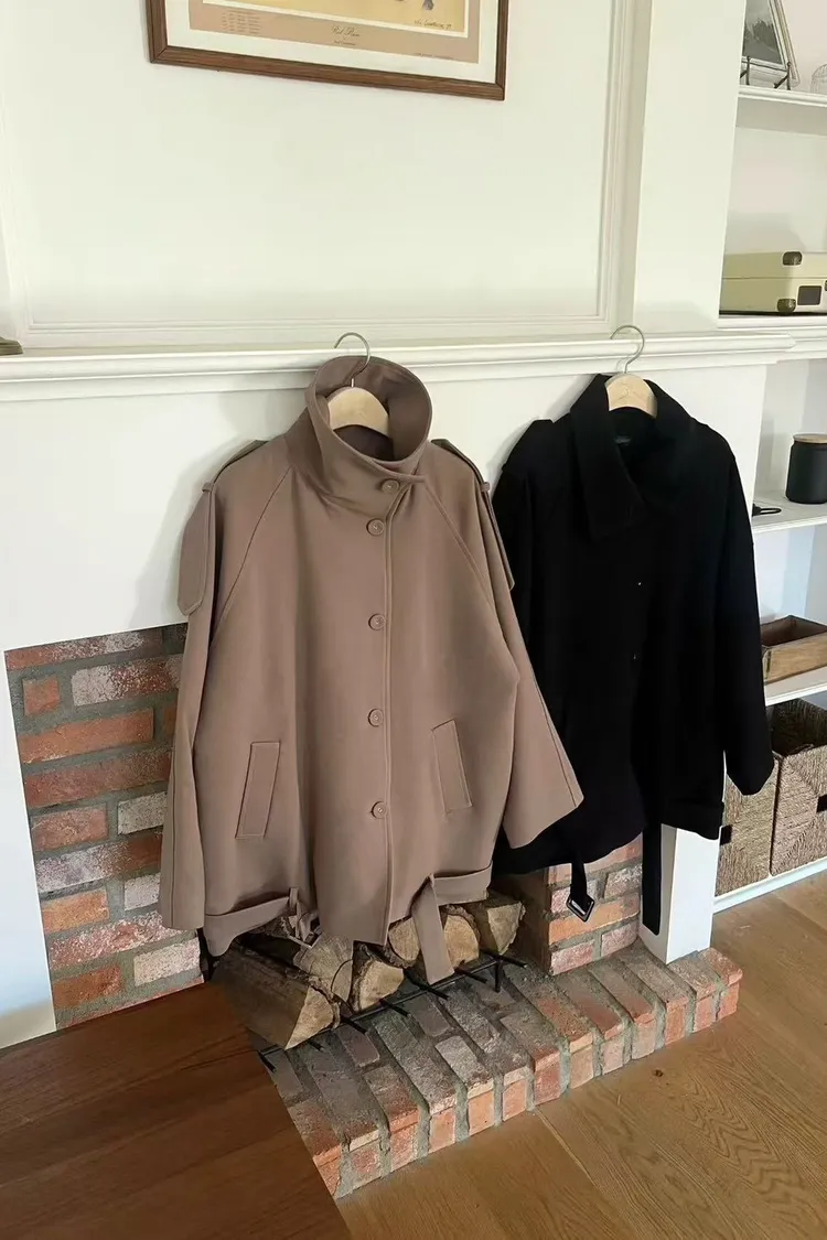 氣質高領排扣外套(咖,黑)