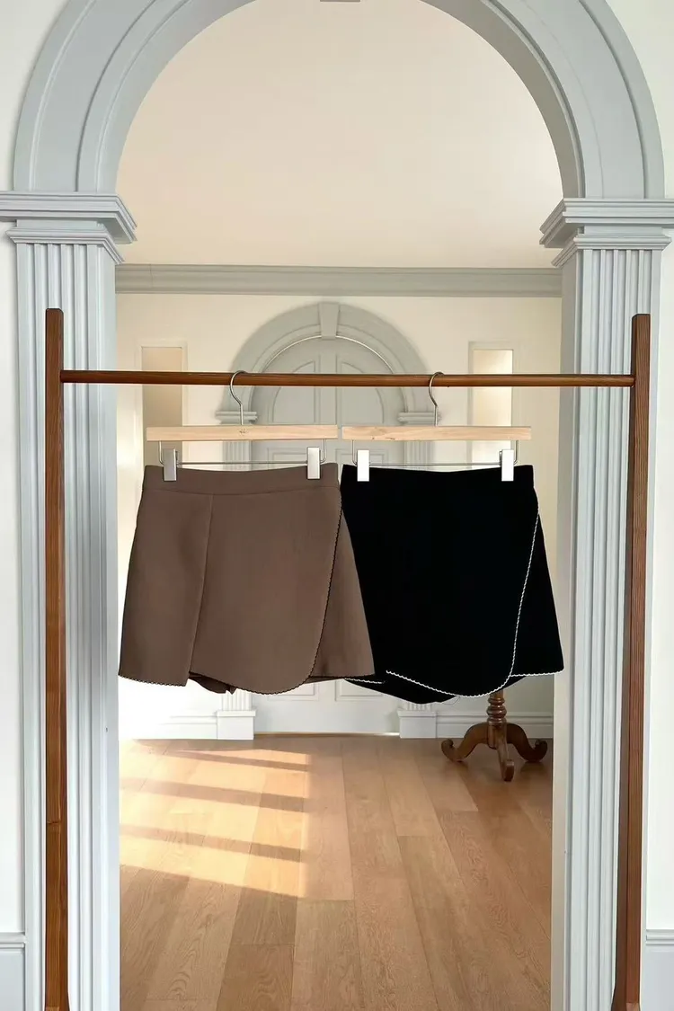 斜打摺設計褲裙(咖,黑)