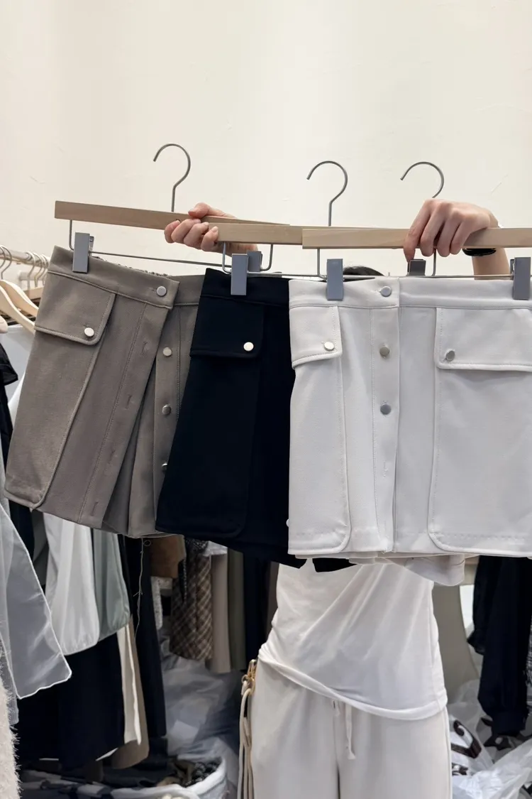 排釦設計短褲裙(杏,黑,白)