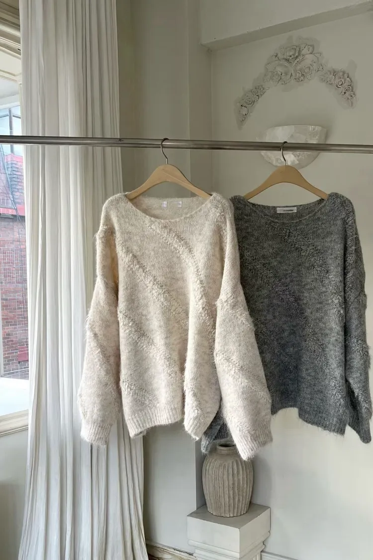 安哥拉羊毛5%美感斜紋針織上衣(白,灰)