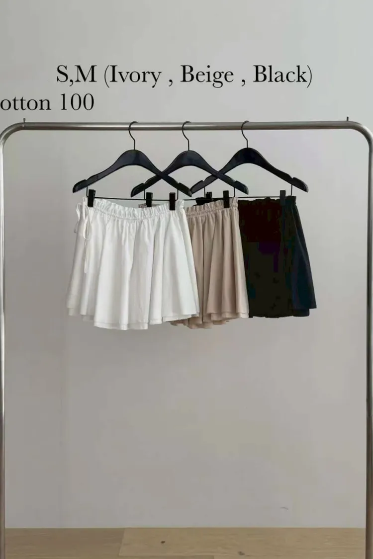 棉100%減齡綁帶鬆緊短裙(白,杏,黑)(S,M)