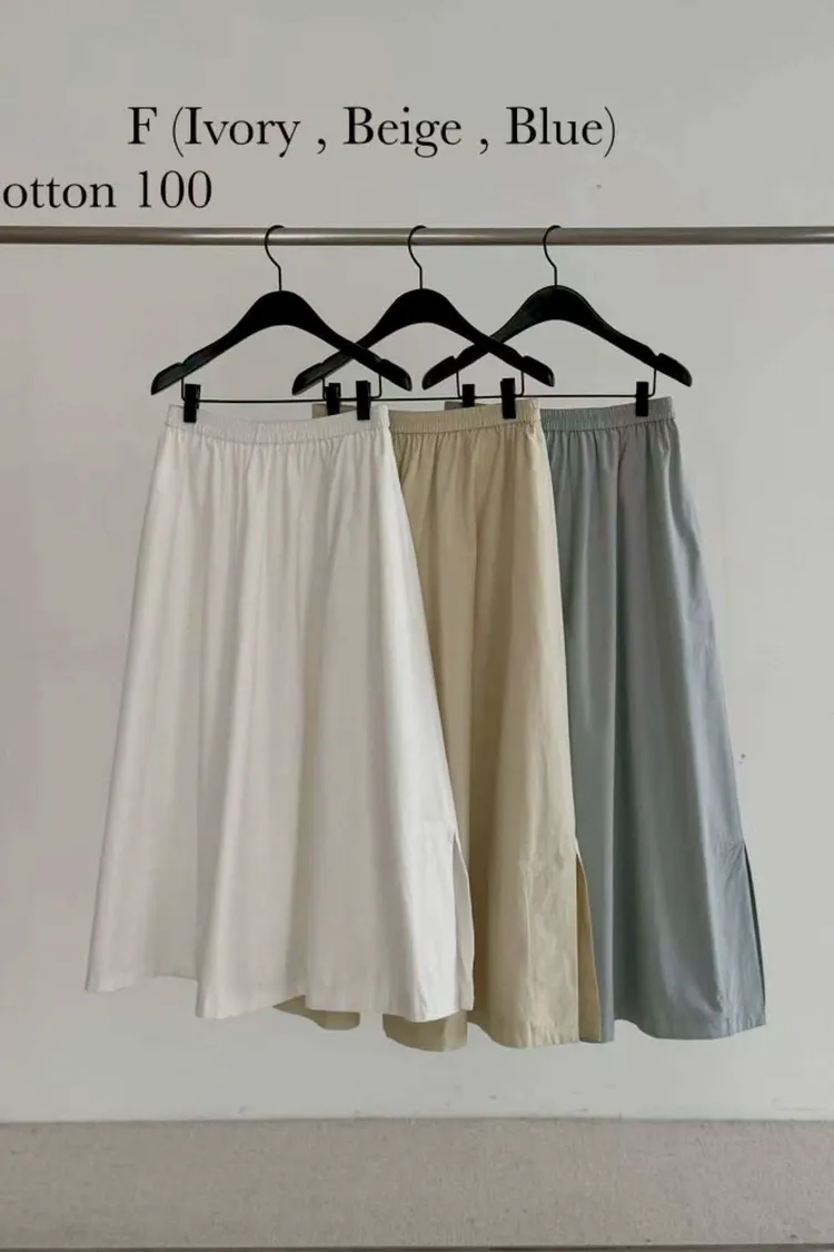 棉100%挺版鬆緊打摺裙(白,杏,藍)