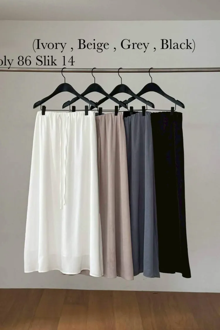 絲綢14%氣質垂墜鬆緊裙(白,杏,灰,黑)