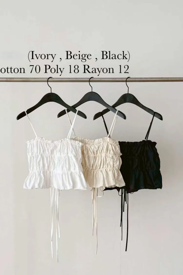 棉70%人造絲12%減齡細肩鬆緊綁帶背心(白,杏,黑)