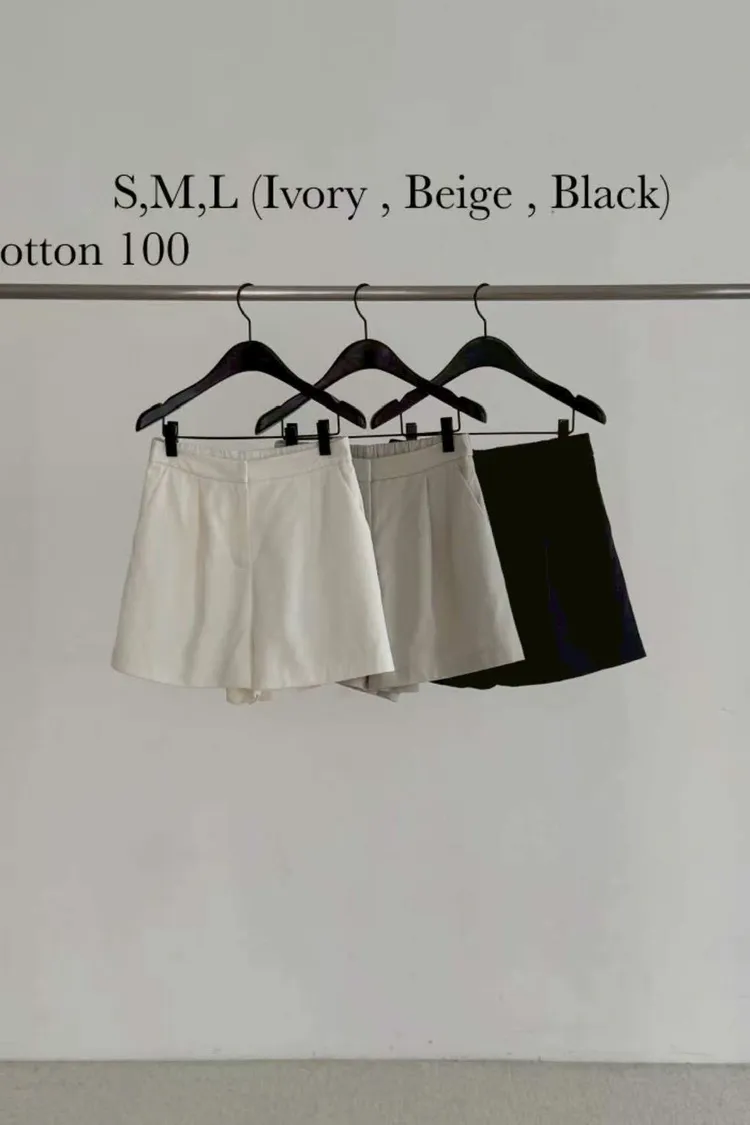 棉100%後鬆緊口袋短褲(白,杏,黑)(S,M,L)