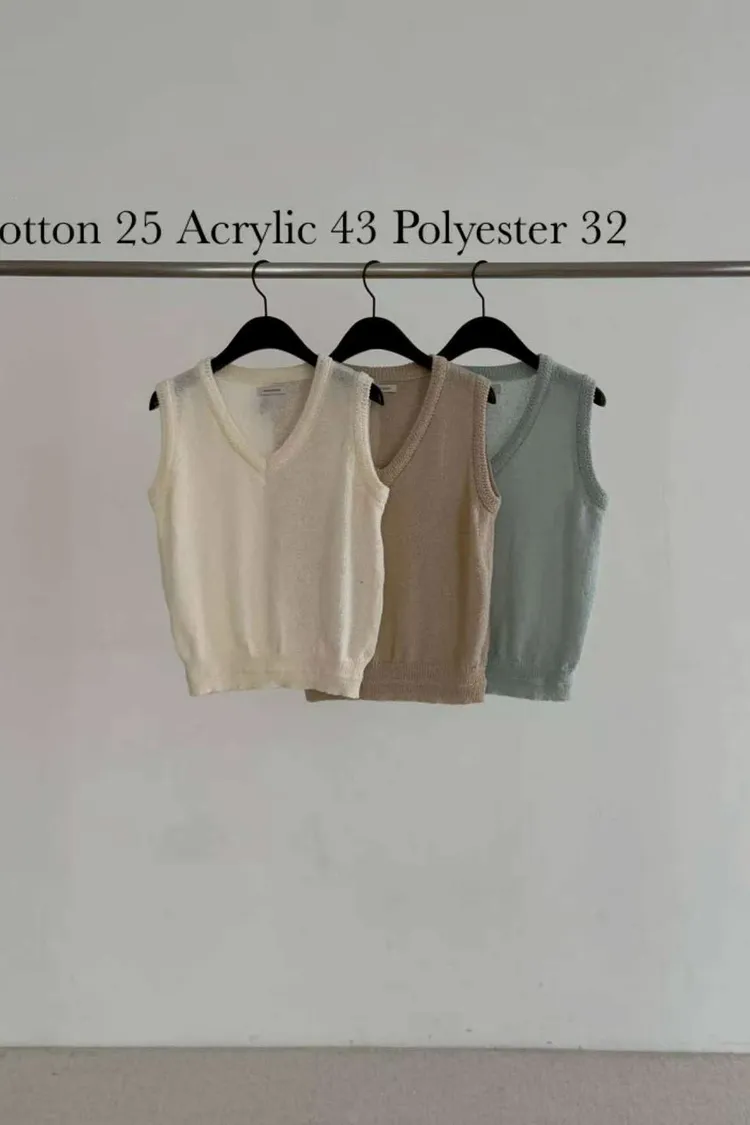 棉25%寬肩V領紋路背心(米,杏,藍)