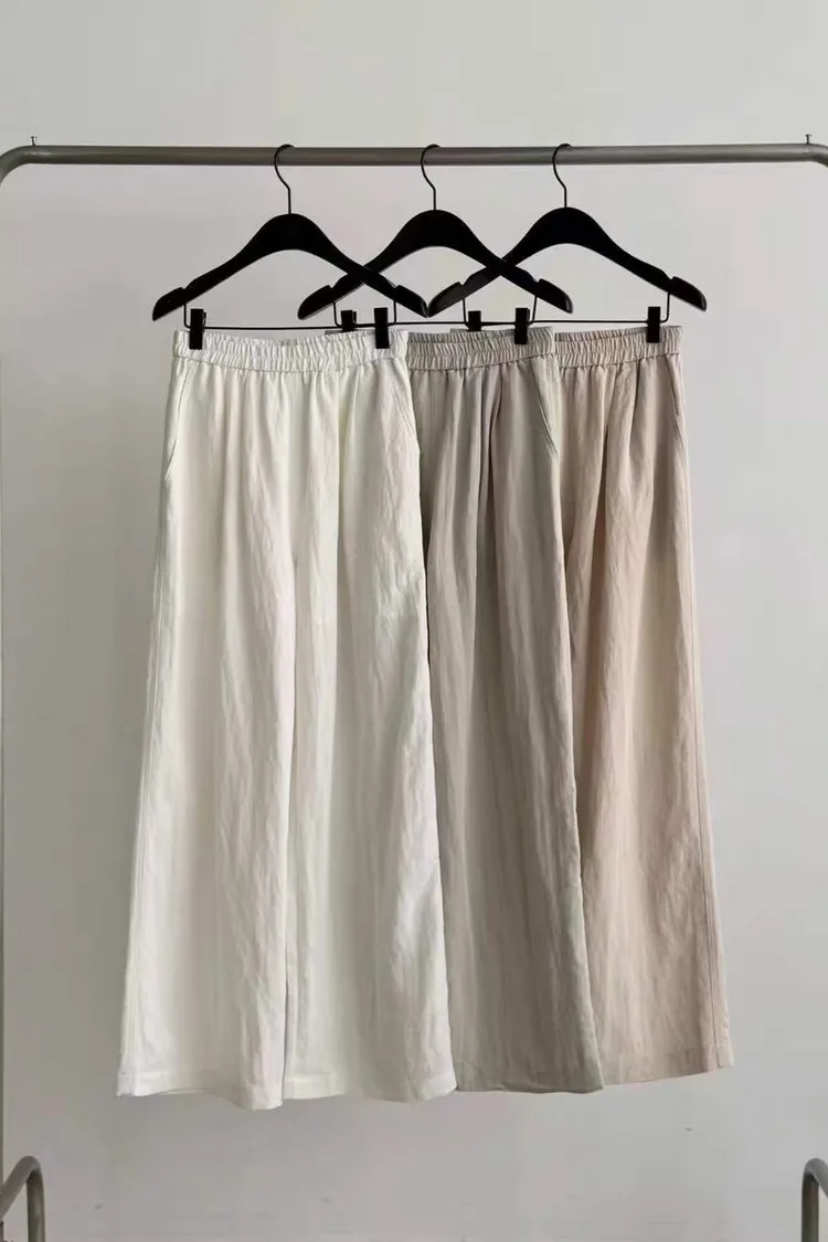 隨性氛圍百搭挺料鬆緊腰褲(白,灰,杏)(S,M)