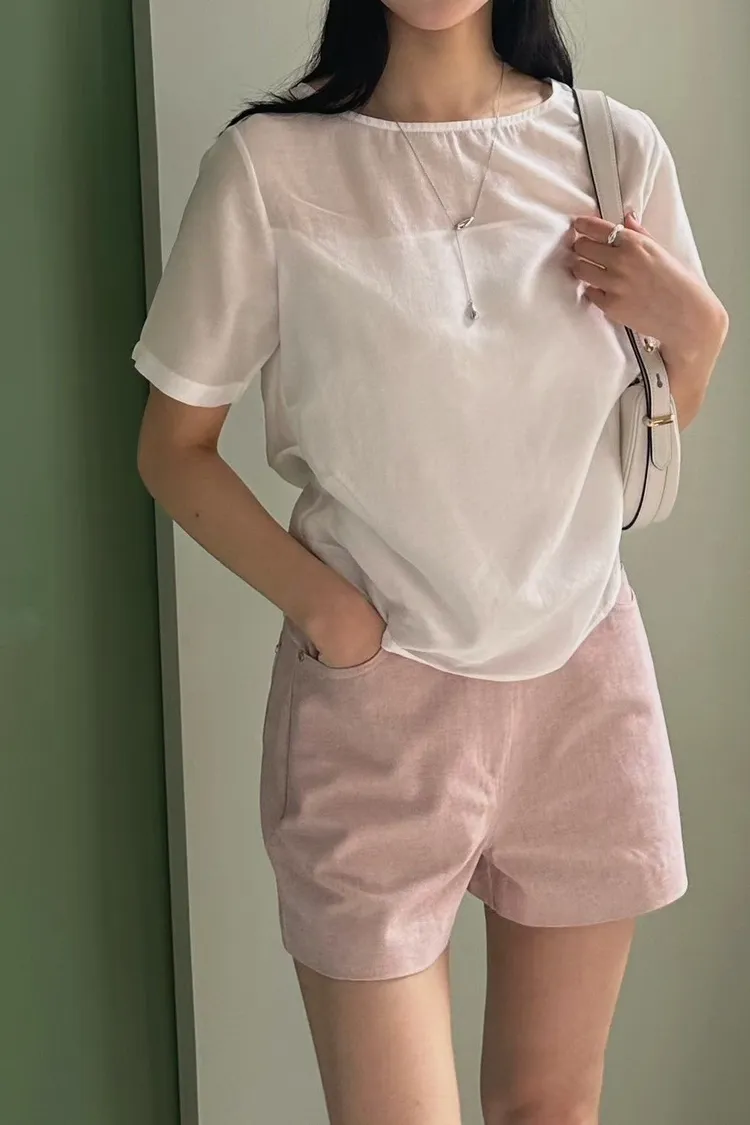 純棉100%斜紋面料漂亮短褲(粉,藍)(S,M)