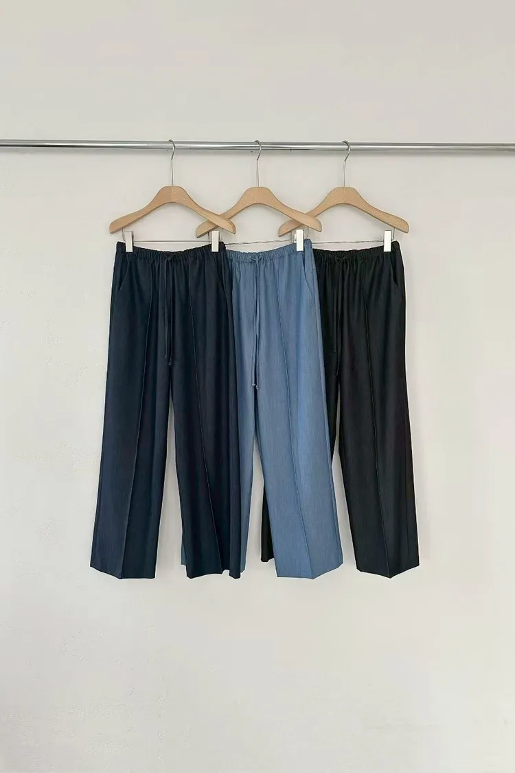 人造絲21%舒服垂墜車線鬆緊長褲(淺藍,深藍,黑)