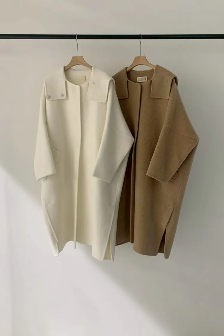 美麗諾65%羊駝15%減齡造型長版大衣(白,棕)