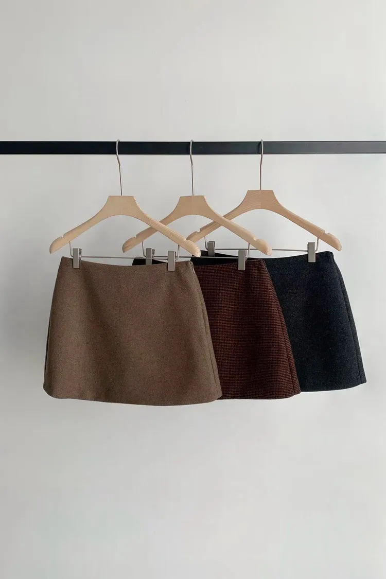 羊毛50%A字版型毛料短褲裙(灰,棕,格子)(S,M)