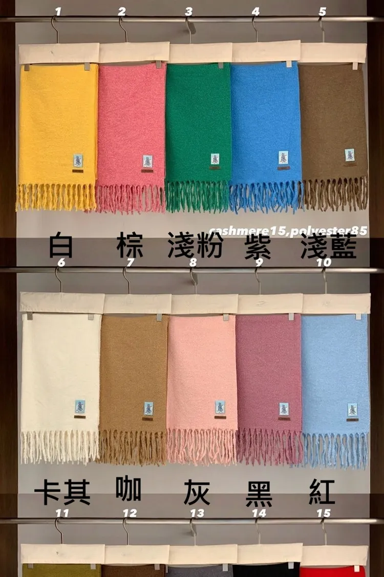 羊絨15%減齡鬚鬚圍巾(黃,深粉,綠,深藍,深棕,白,棕,淺粉,紫,淺藍,卡其,咖,灰,黑