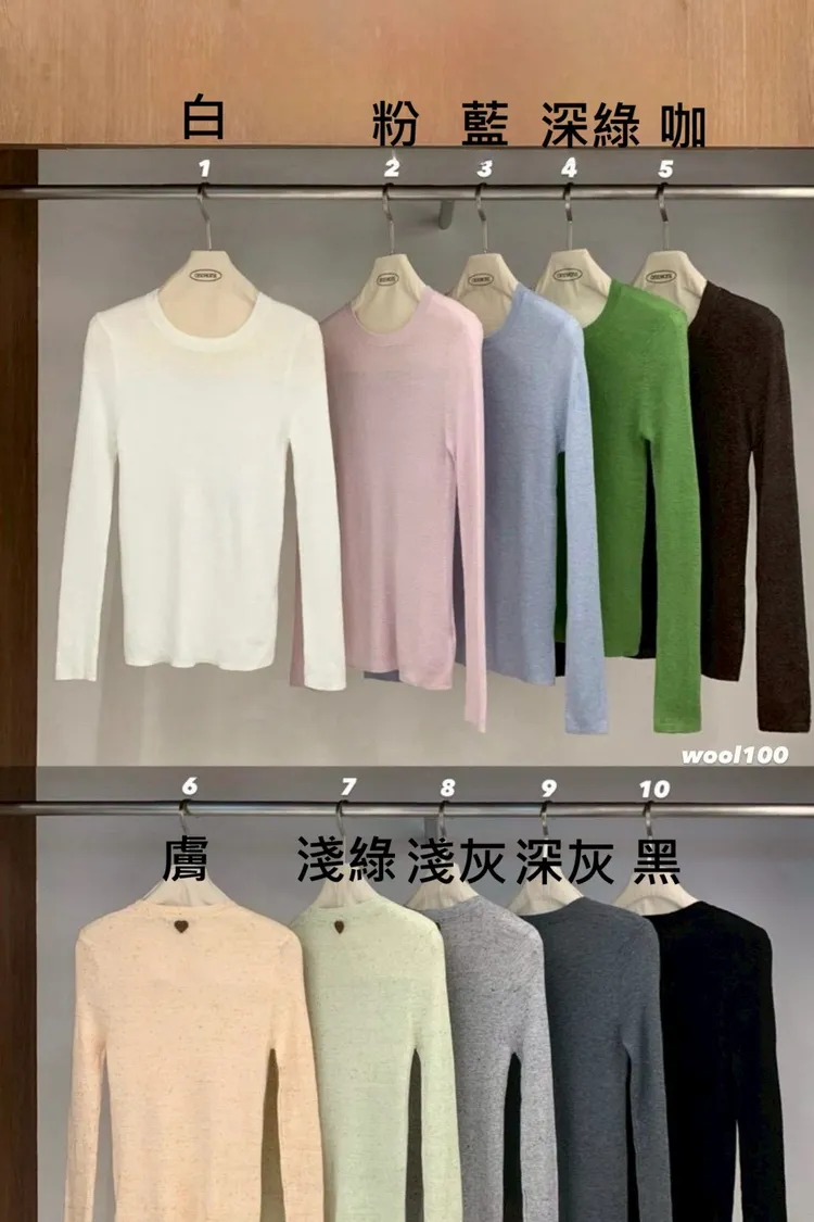 羊毛100%打底圓領上衣(白,粉,藍,深綠,咖,膚,淺綠,淺灰,深灰,黑)