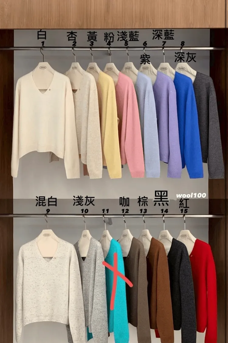 羊毛100%V領百搭上衣(白,杏,黃,粉,淺藍,紫,深藍,深灰,混白,淺灰,咖,棕,黑,紅
