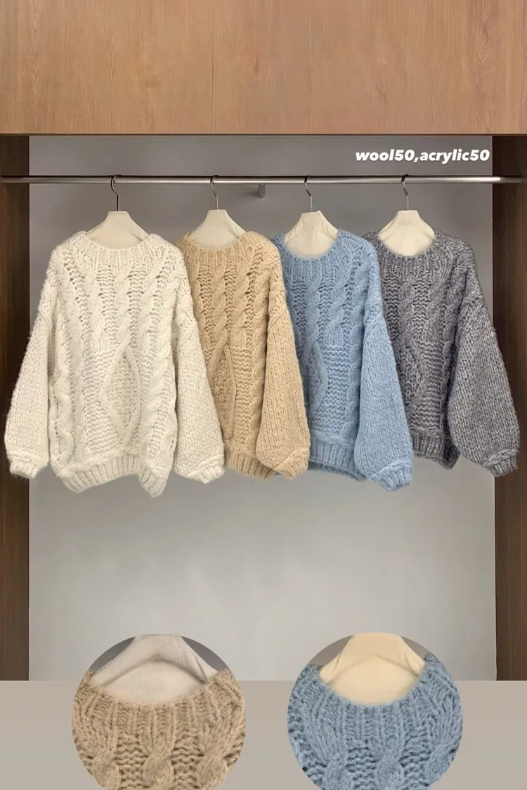 羊毛50%減齡麻花上衣(白,杏,藍,灰)