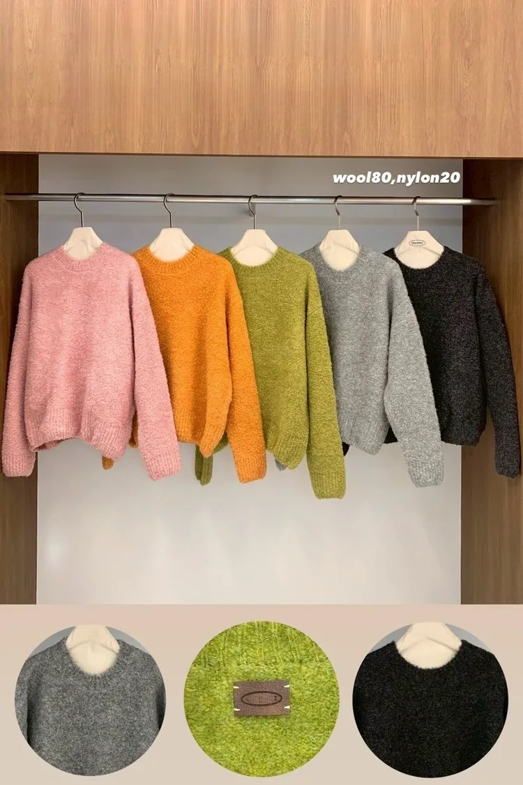 羊毛80%圓領毛毛衣(粉,橘,綠,灰,黑)