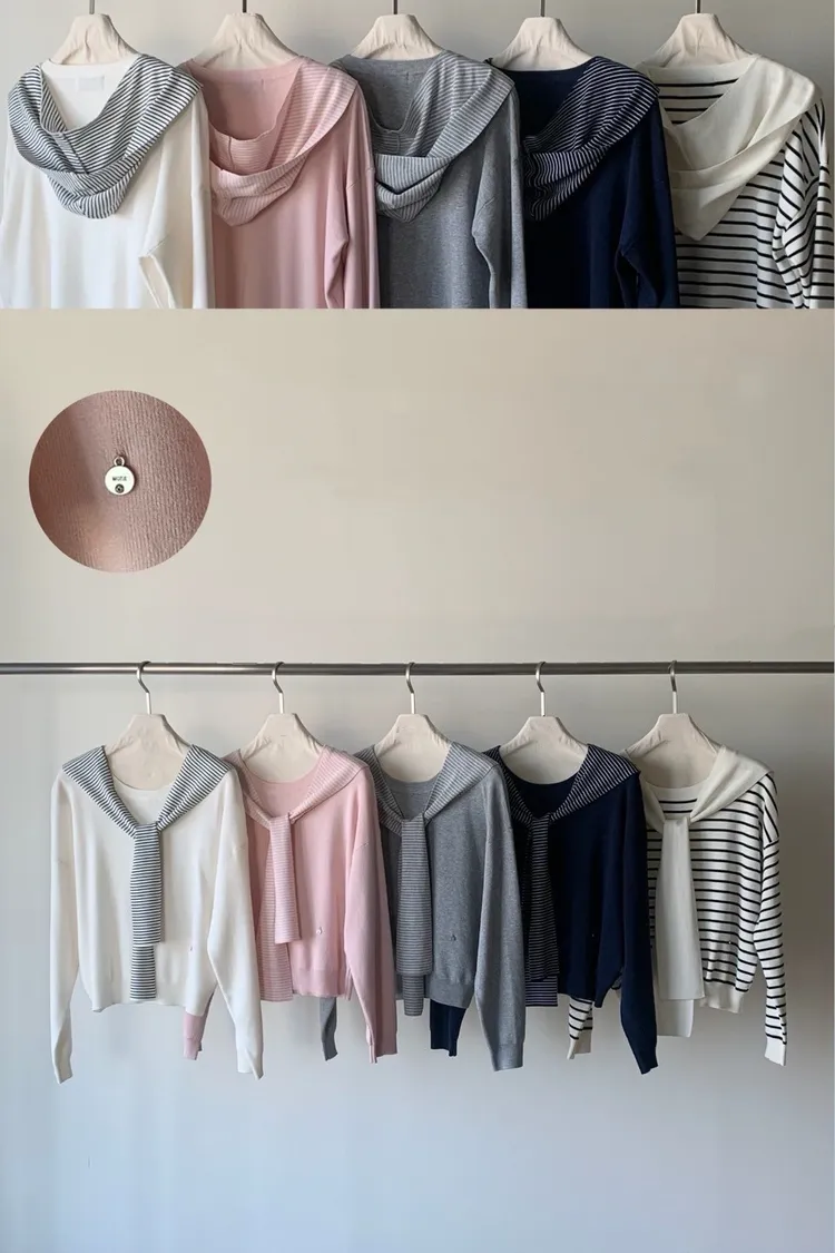 羊毛65%減齡披肩圓領上衣(白,粉,灰,藍,條紋)