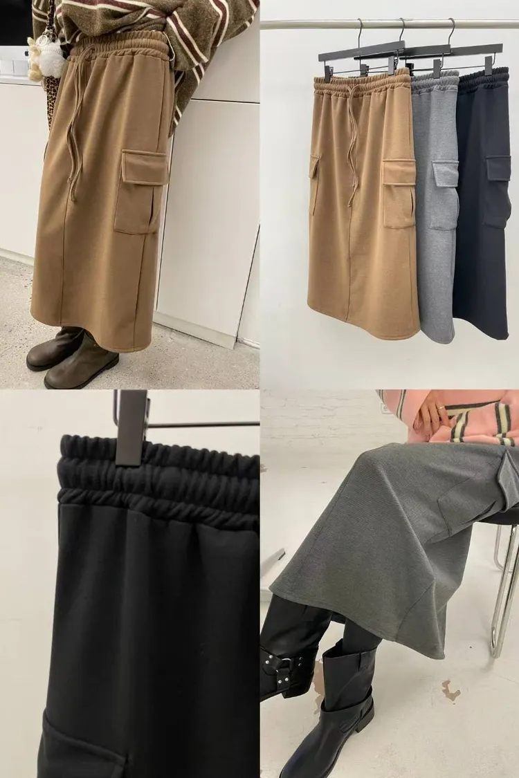工裝版型鬆緊裙(棕,灰,黑)