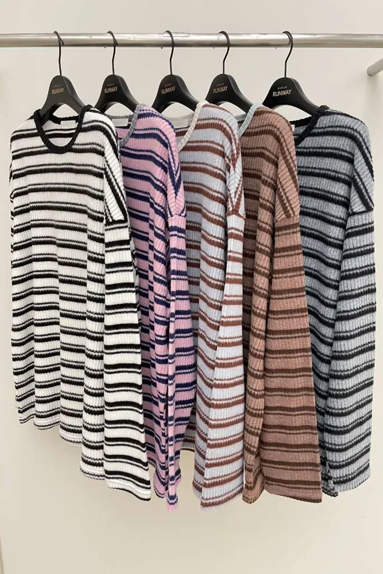 休閒滾邊橫條上衣(白,粉,藍,棕,灰)