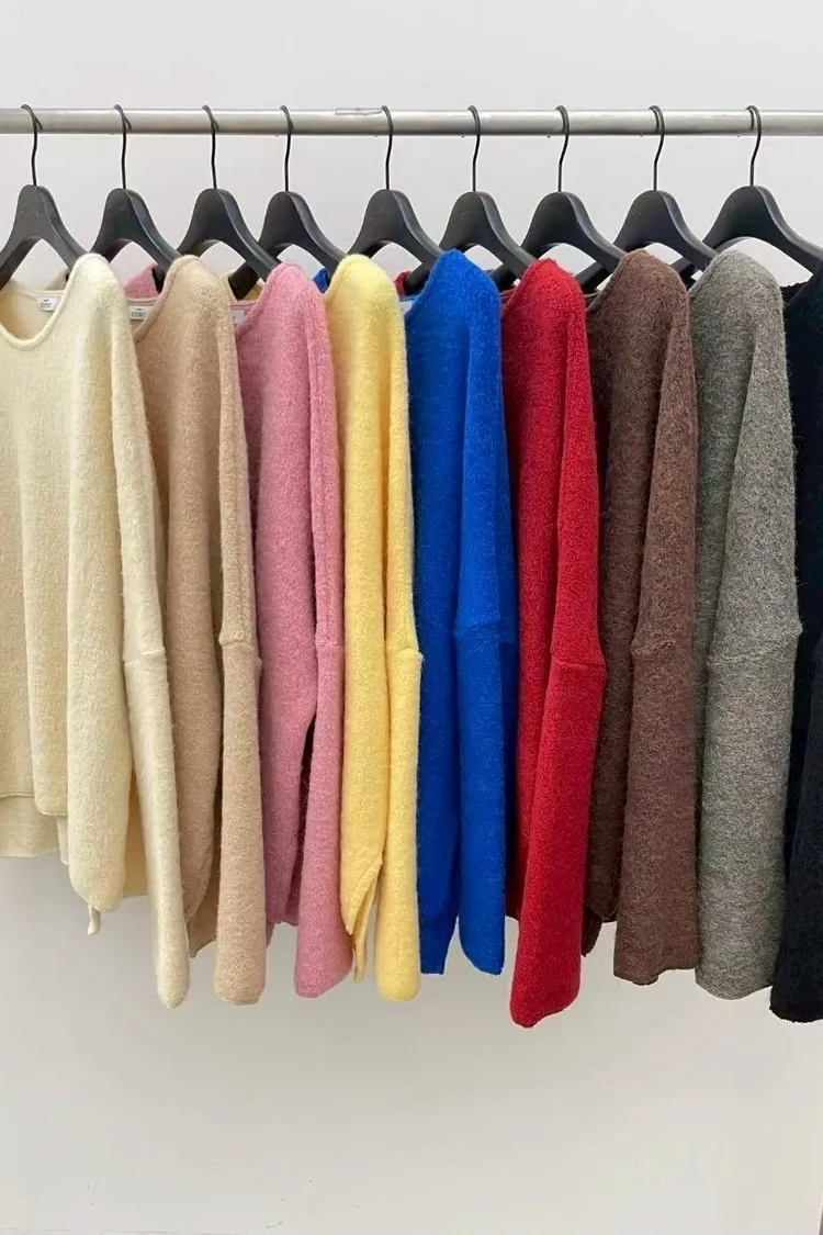 羊毛10%圓領前短後長上衣(米,杏,粉,黃,藍,紅,咖,灰,黑)
