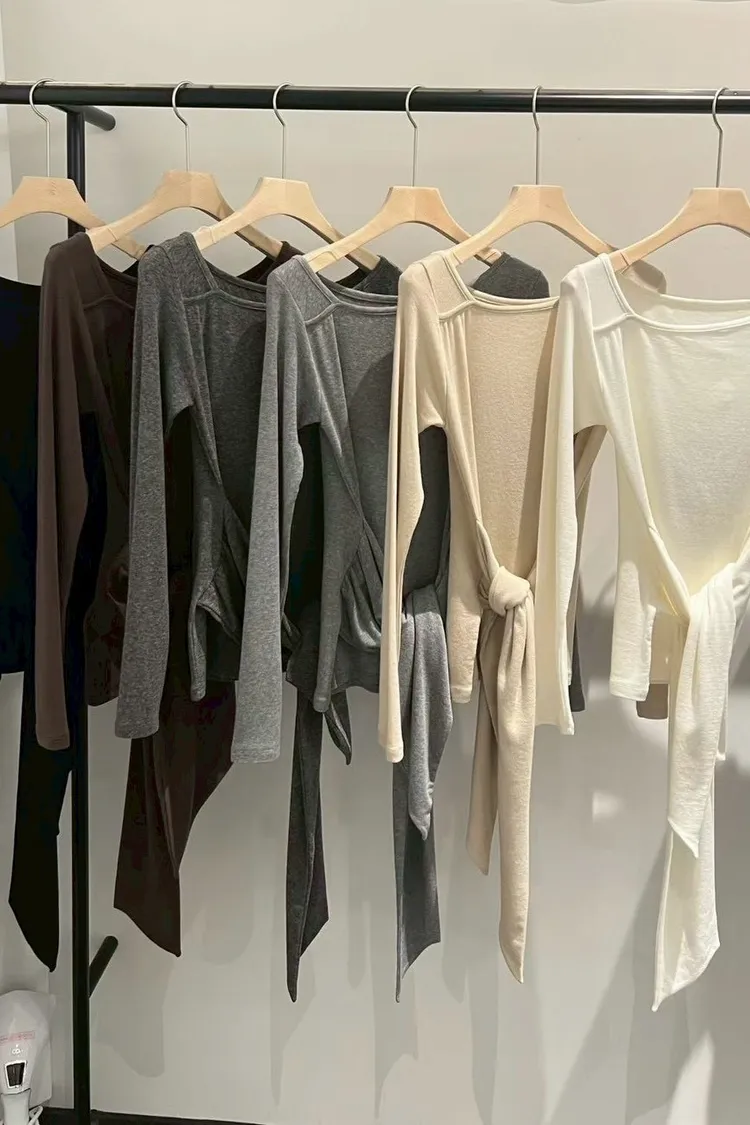 天絲66羊毛28%造型車線綁帶上衣(白,杏,淺灰,深灰,咖,黑)