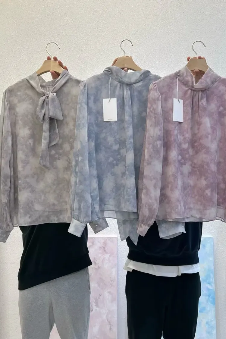 氣質渲染綁帶上衣(灰,藍,紫)