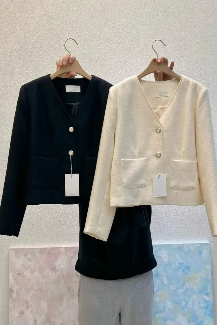 無領小香風外套(黑,白)
