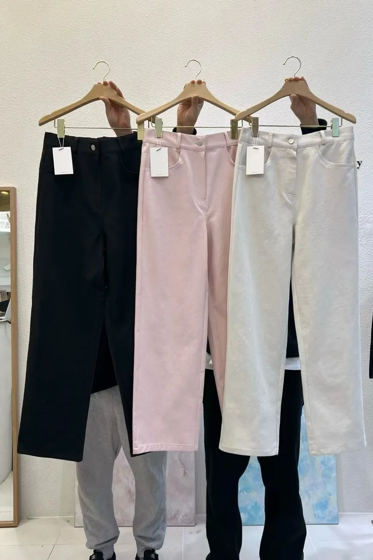 水洗牛仔棉超好搭修身直筒長褲(黑,粉,白)