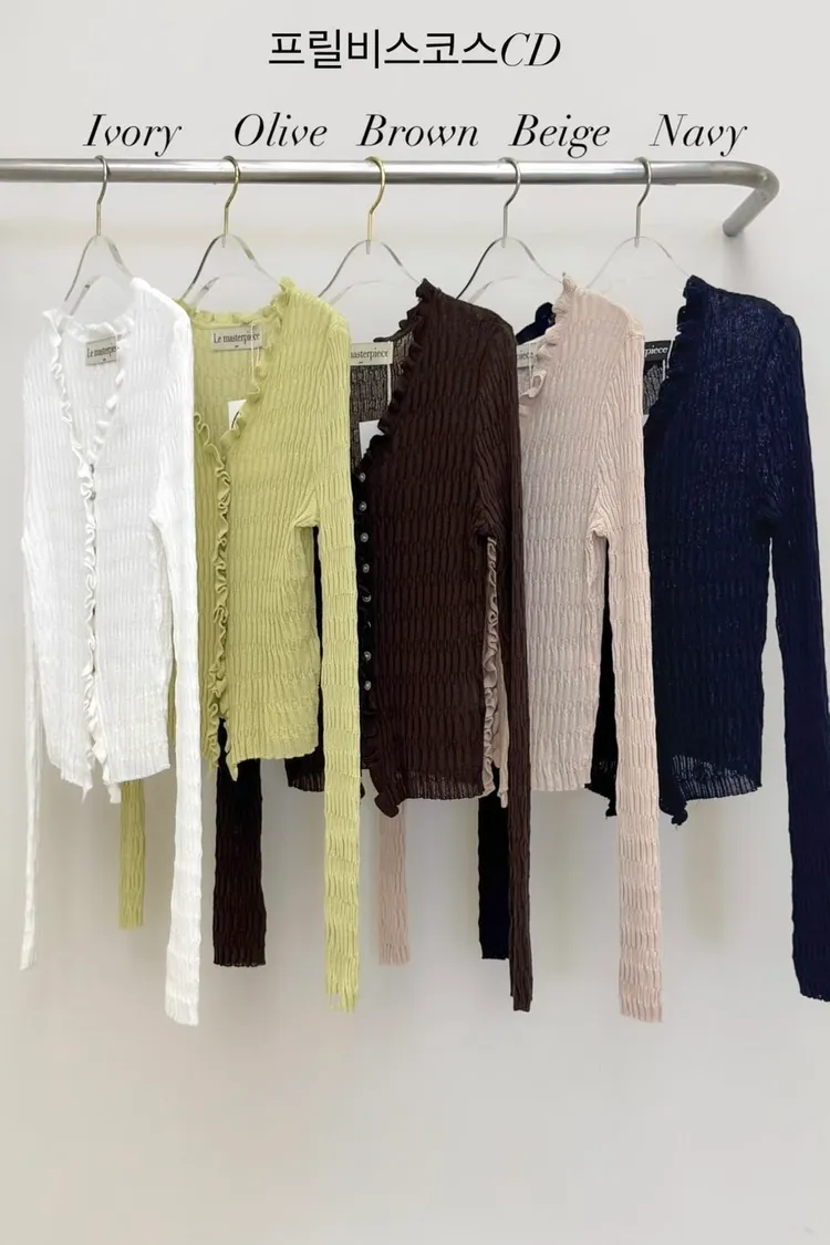 波浪領設計上衣(白,綠,咖,粉,藍)