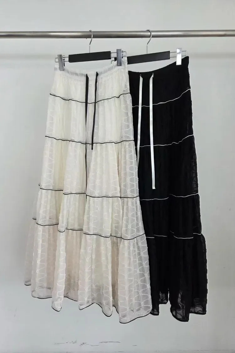 百搭撞色蛋糕裙(米,黑)