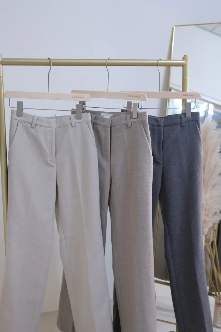 斜紋毛料西裝褲(米/杏/灰)(S/L)