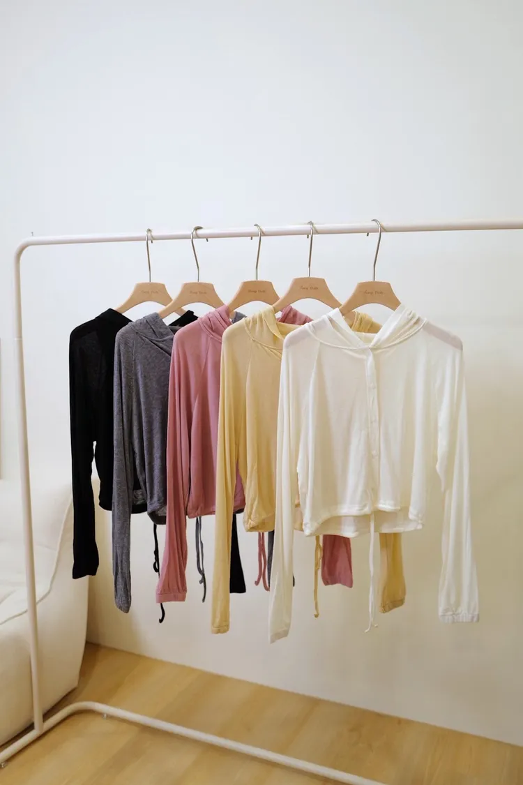 天絲縮口連帽休閒上衣(灰,黃,粉,黑,白)