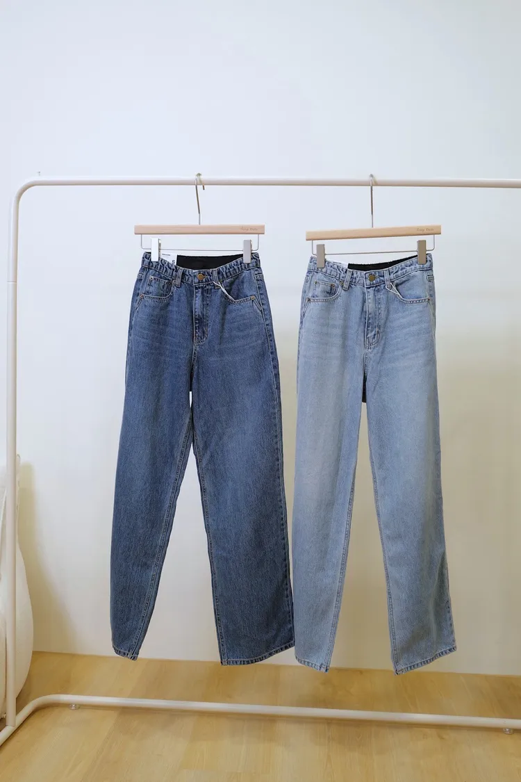 純棉漂亮紋路鬆緊腰牛仔褲(S,M,L)(深,淺)