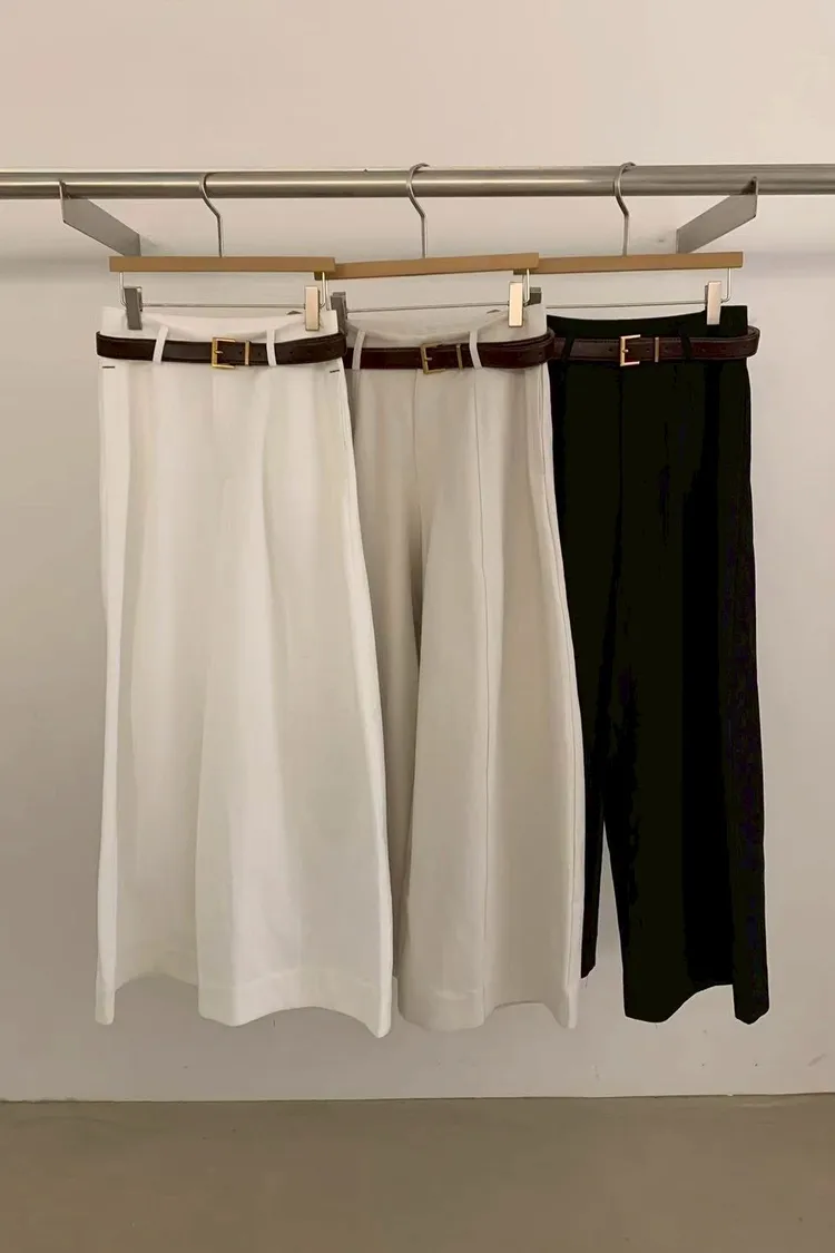 棉85%亞麻15車線打摺口袋長褲(白,杏,黑)(S,M)