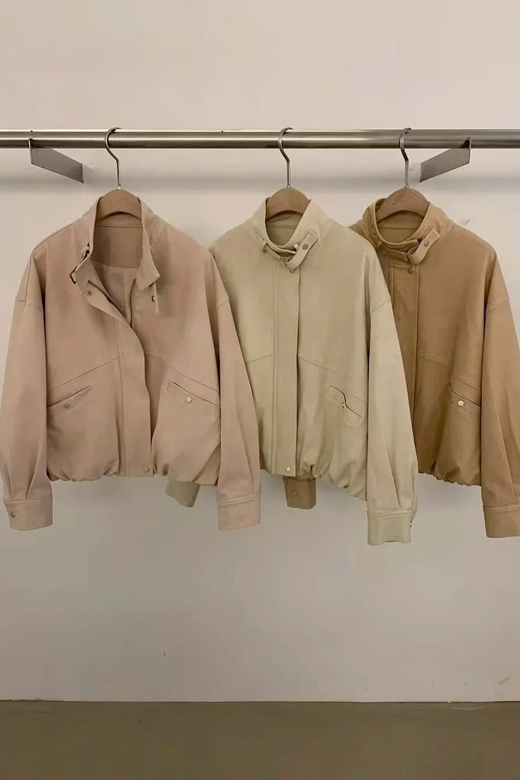 率性立領車線拉鍊外套(粉,杏,卡其)