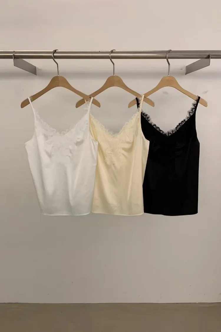 蕾絲抓皺背心(白,米,黑)