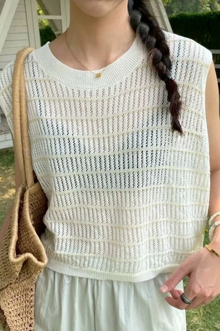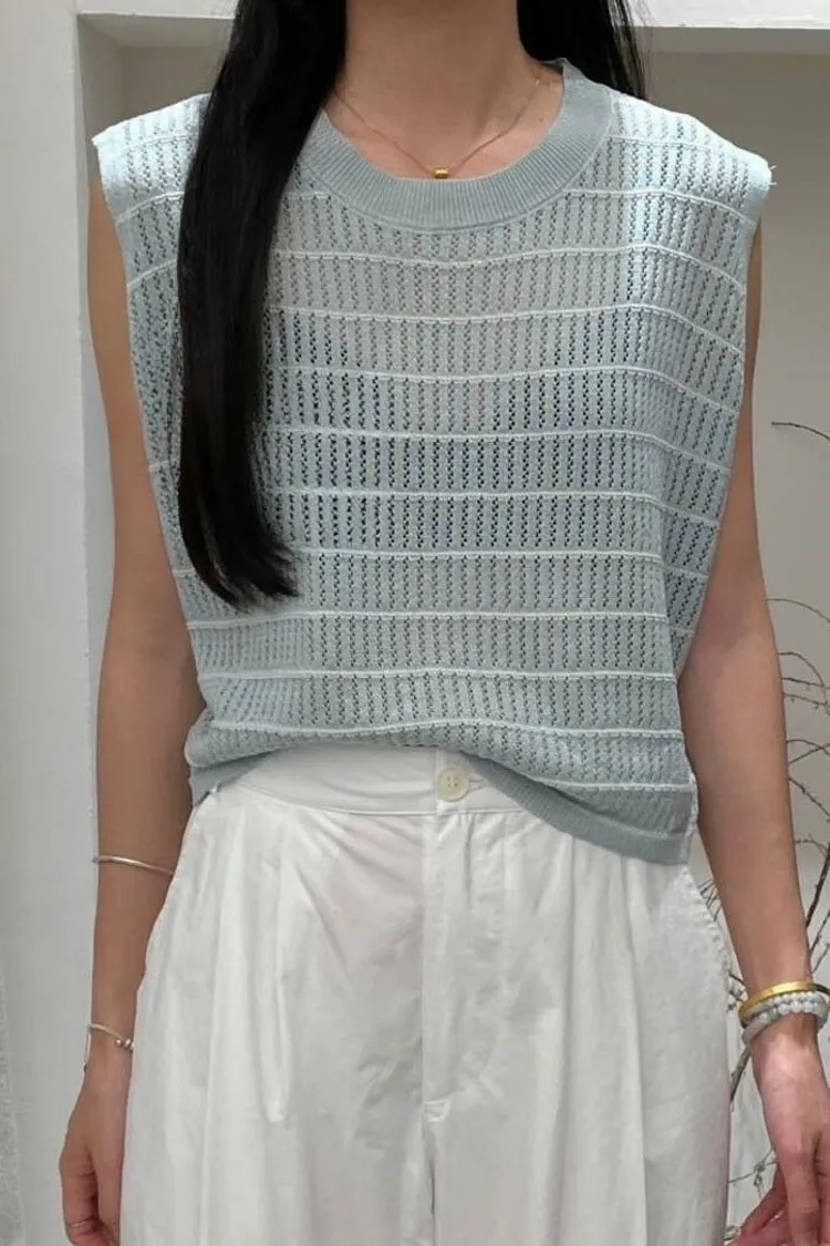 休閒寬肩透膚背心(白,杏,綠,藍,灰,黑)