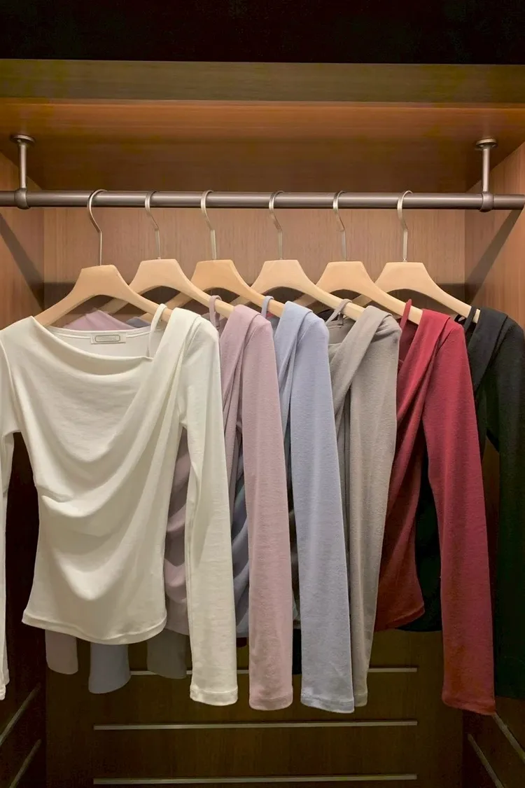 人造絲45%氣質抓皺造型上衣(白,粉,藍,灰,紅,黑)