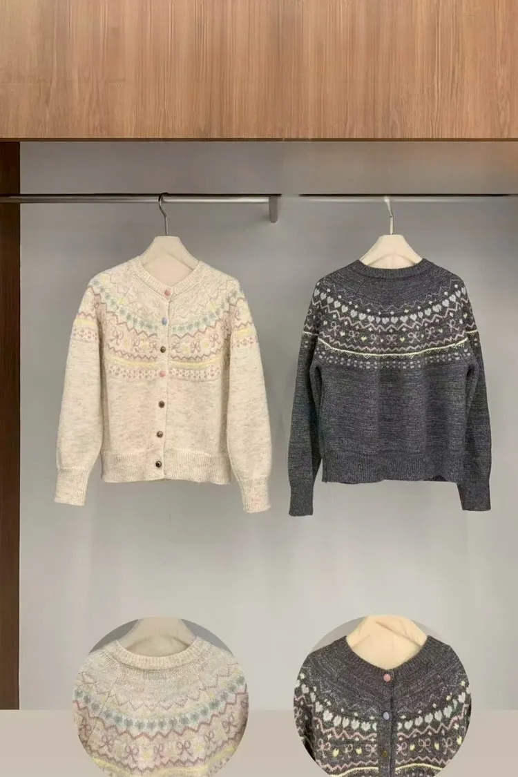 特價款羊毛50%羊駝20%減齡印花圓釦上衣(米,灰)