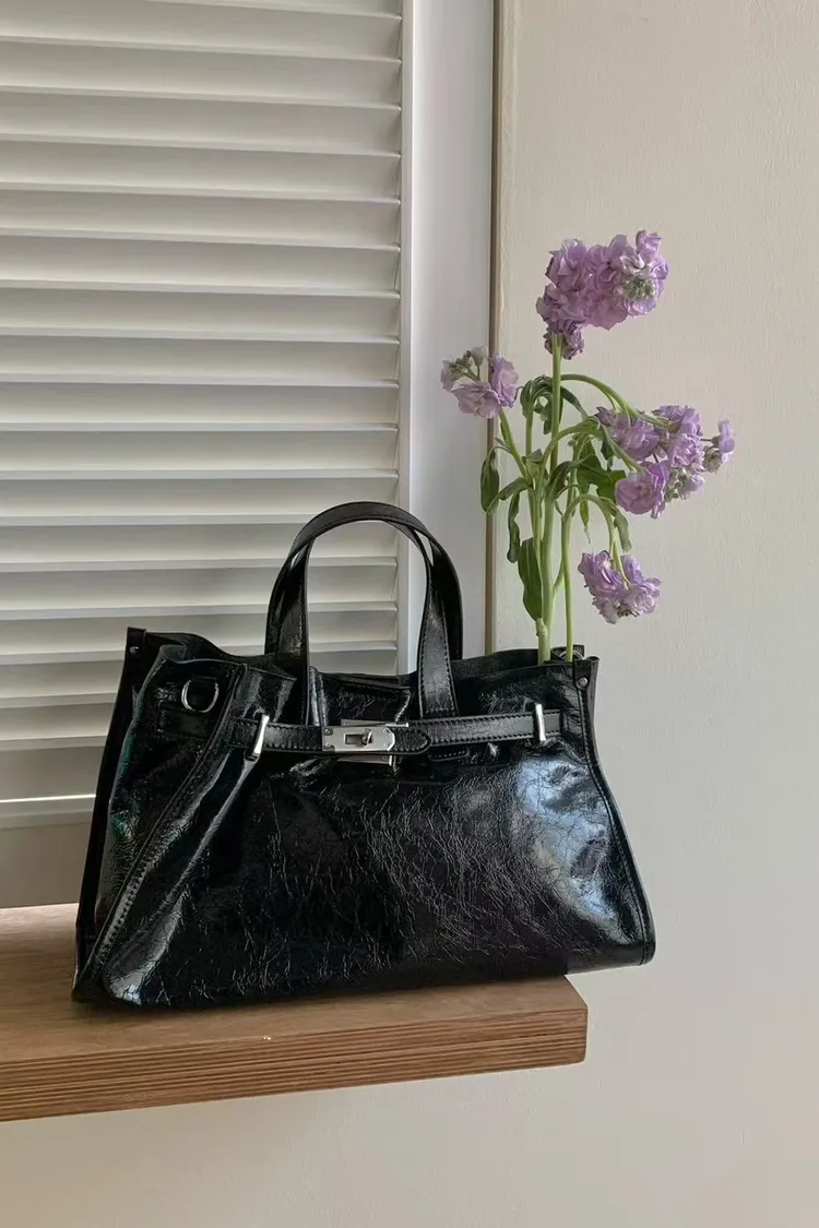 牛皮率性紋路手提方包(白,黑)