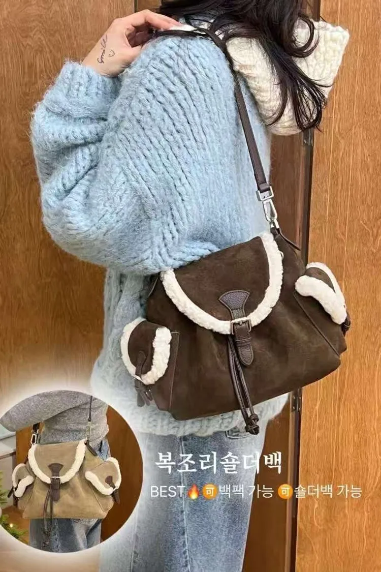 牛皮秋冬減齡毛毛包包(卡其,咖)