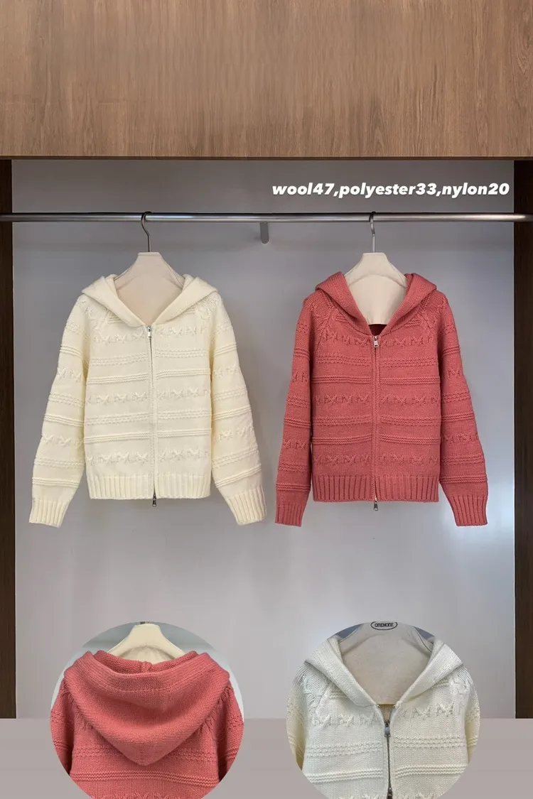 羊毛47%拉鍊連帽針織外套(白,粉)