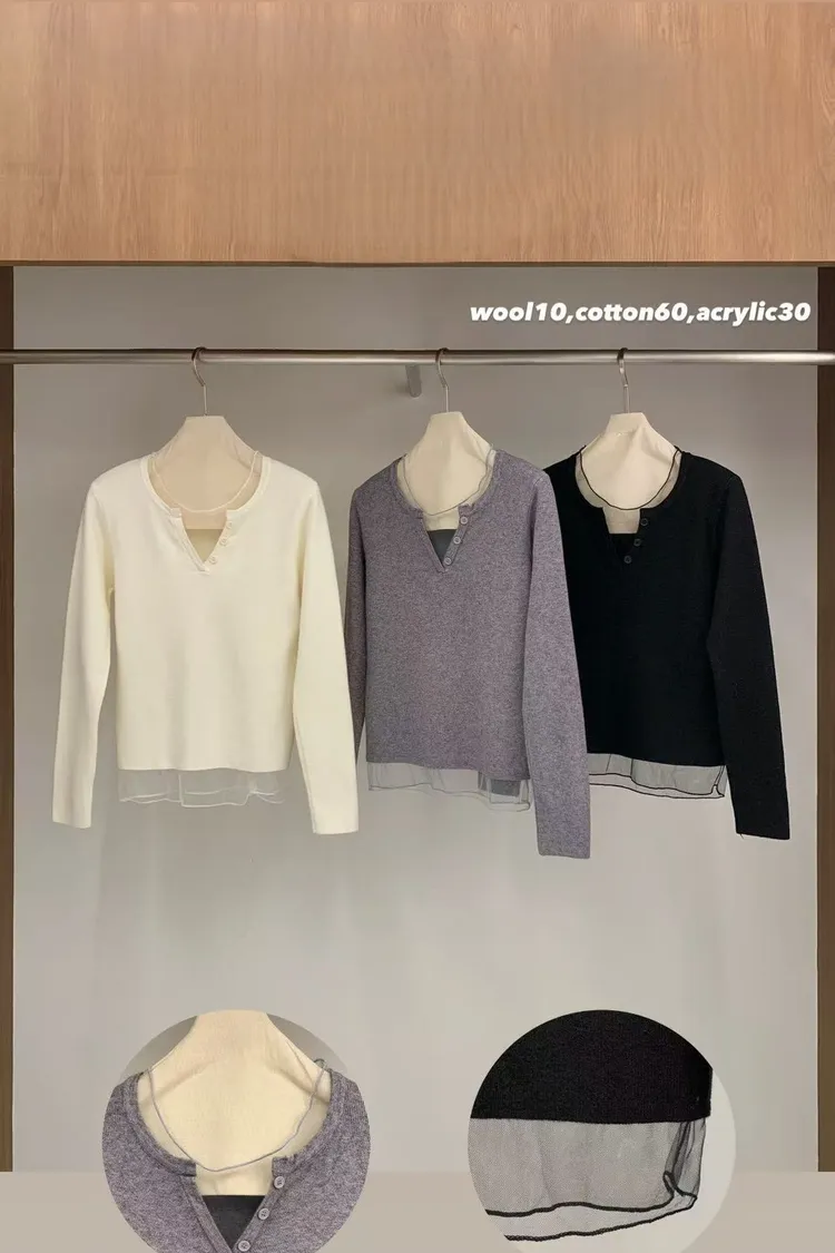 (特價款)羊毛10%棉60%V領網紗針織衣(白,灰,黑)