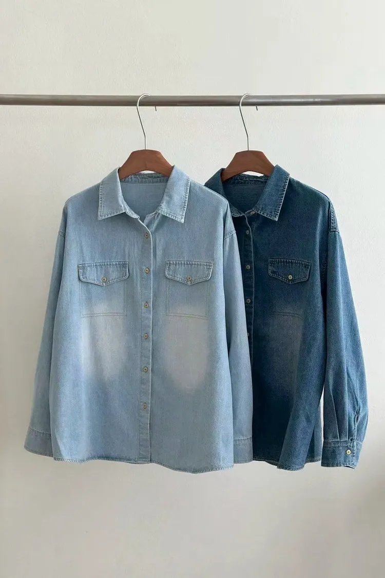 漂亮刷色牛仔襯衫(淺,深)