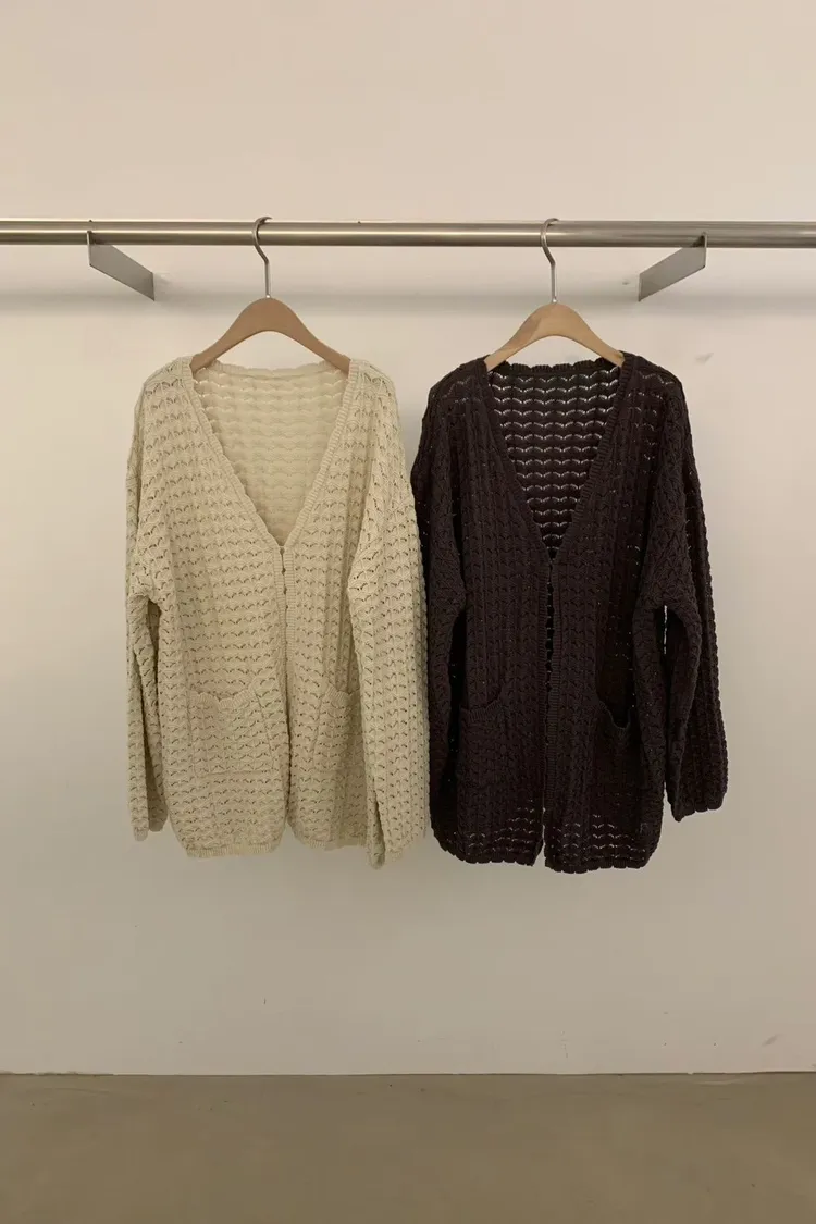 純棉100%V領坑紋外套(杏,咖)