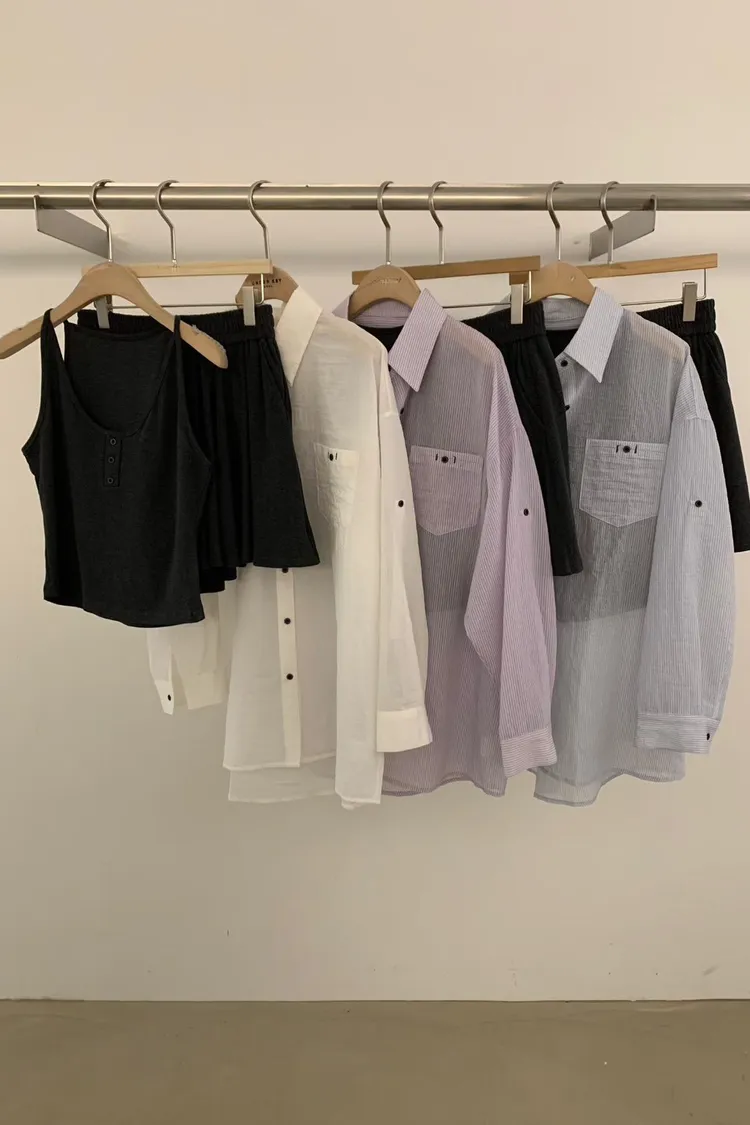 棉20%春天感襯衫背心短褲set(紫,藍,米)