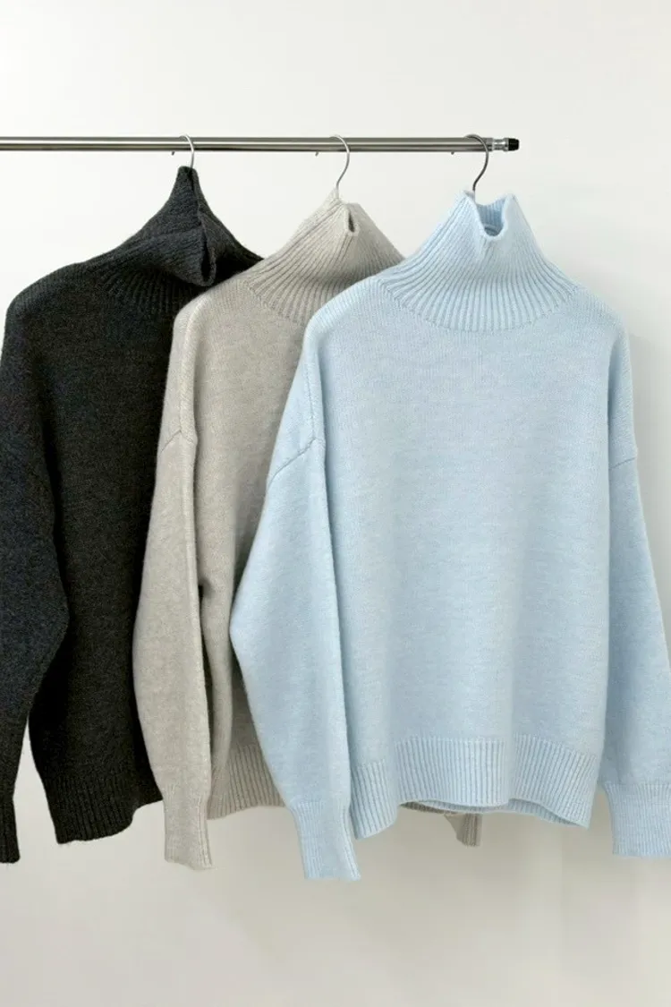 羊毛15%溫柔高領上衣(藍,淺灰,深灰)